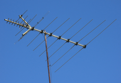A typical TV antenna such as this one (hi-res version) is a resonant system--the transverse arms are half a wavelength long at the frequencies of the traditional broadcast TV channels. The smaller sets of transverse arms are for higher frequency (UHF) channels. For more on resonance, see Standing Wave Resonance. To read about a new kind of antenna, visit Fractal Antenna Design.